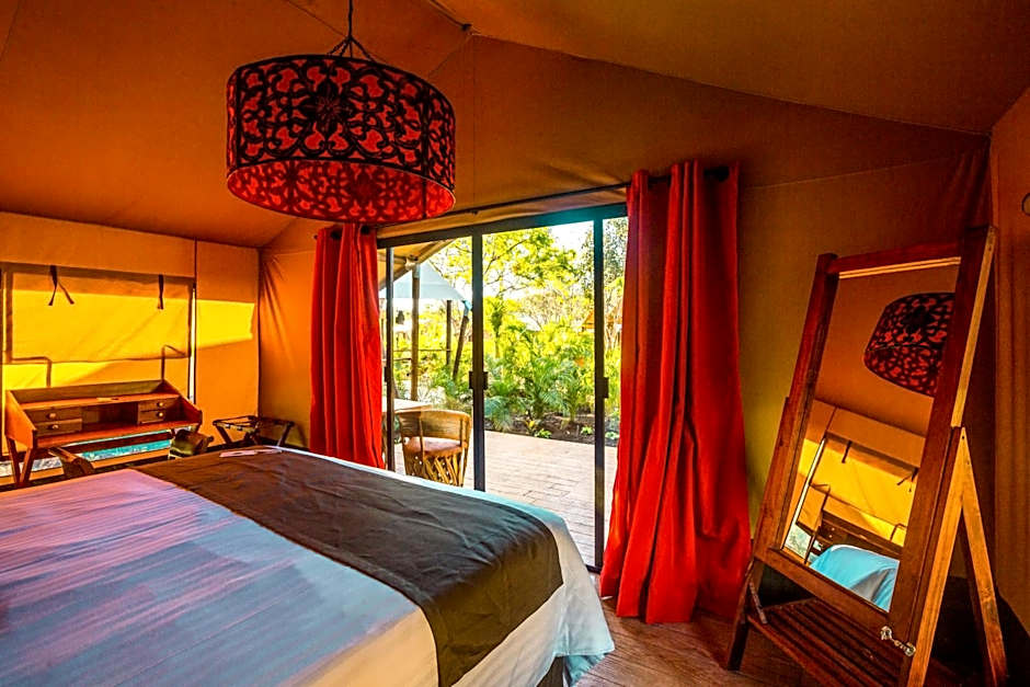This tent's special feature is the pool with a view. The tent provides air conditioning, a private entrance, a terrace with garden views as well as a private bathroom featuring a walk-in shower. The unit offers 3 beds.
